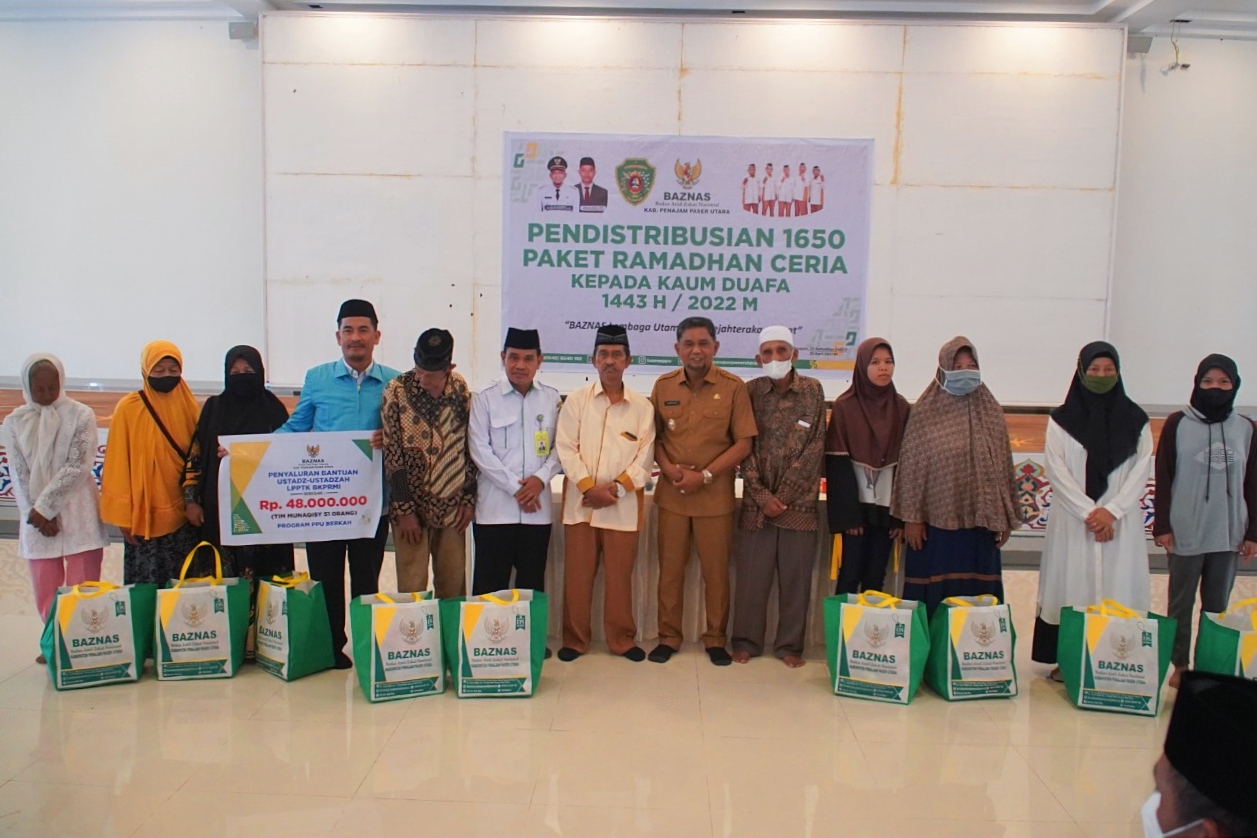 KALTIMTALK.COM, PENAJAM – Pemerintah Kabupaten Penajam Paser Utara (PPU) melalui Badan Amil Zakat Nasional ( BAZNAS ) Kabupaten PPU memberikan 1.650 paket Ramadan Ceria kepada kaum duafa di Sekretariat BAZNAS lantai I Masjid Agung Al Ikhlas Nipah – Nipah, Senin (25/04/2022), yang diserahkan langsung oleh Plt. Bupati PPU Ir. H. Hamdam.