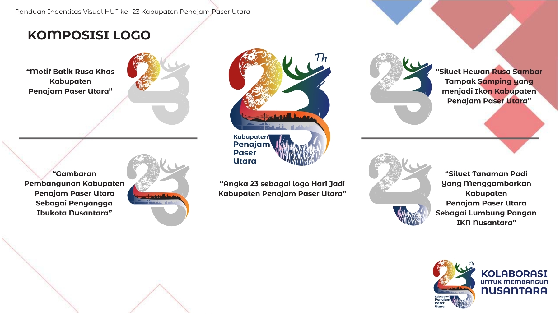Dengan semangat kolaborasi, logo ini diharapkan dapat menjadi simbol yang menginspirasi seluruh lapisan masyarakat dalam mendukung pembangunan dan kemajuan Kabupaten Penajam Paser Utara.(Adv/DiskominfoPPU)