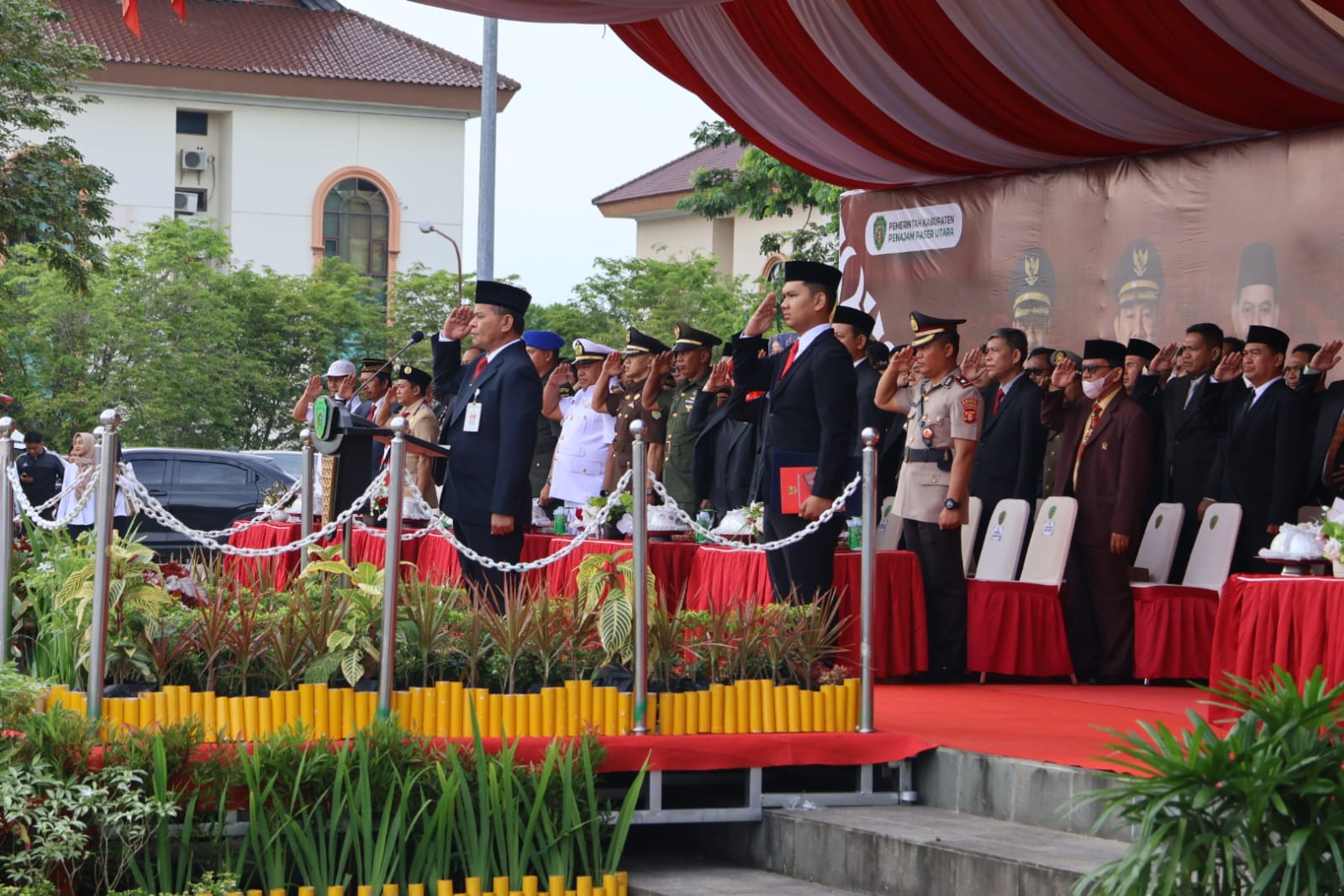 Pelaksanaan upacara berjalan khidmat, dihadiri jajaran Forum Komunikasi Pimpinan Daerah (Forkopimda) PPU, para asisten, kepala Satuan Kerja Perangkat Daerah (SKPD) di lingkup PPU, tampak hadir sebagai peserta upacara jajaran Aparatur Sipil Negara (ASN), TNI/Polri, Satpol-PP, BPBD, dan sejumlah Organisasi Masyarakat (Ormas) di lingkungan Pemkab PPU.